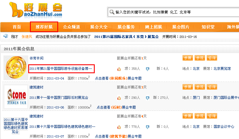 如果您的展覽會(huì)是中國最好的50個(gè)展覽會(huì),我們將在推薦好展欄目列出,如下圖所示: