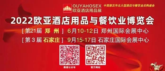 第21屆(鄭州)歐亞酒店用品與餐飲業(yè)博覽會將于2022年6月10-12日在鄭州國際會展中心舉辦;第3屆(石家莊)歐亞酒店用品與餐飲業(yè)博覽會將于2022年9月15-17日在石家莊國際會展中心舉辦。