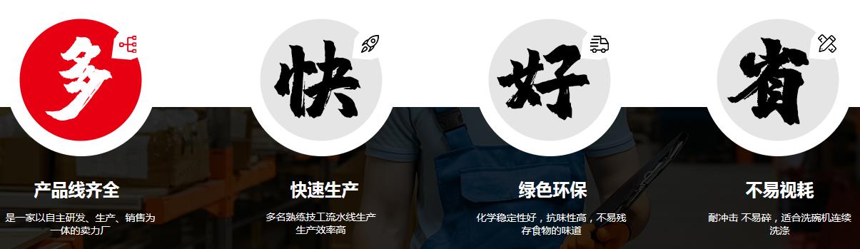 工廠生產(chǎn)的密胺餐具美觀耐用、色澤鮮艷、光潔度好、抗擊力強、耐高溫、無毒無味, 特別適合火鍋、燒烤、連鎖快餐、賓館酒店及學(xué)校食堂使用。